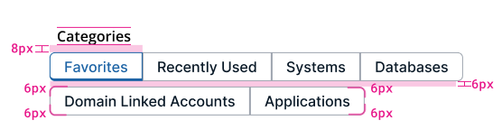 Example of button group wrapping under a section header and corner radius dimensions.