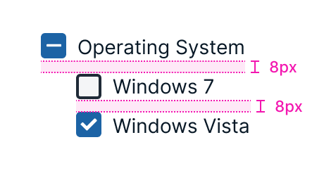 Child checkboxes should be indented to line up with the leftmost edge of their parent checkbox's label.