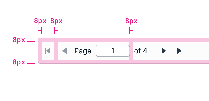Pagination controls are used to navigate pages of data. These controls appear to the left-most side of the component.