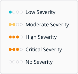 Severity is the framework for scoring and differentiating the different degrees of risk. We use color, words, and components to communicate severity.