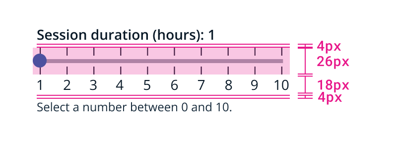 Sliders allow users to select a value from a fixed, sequential set of numbers. Users can click and drag a handle along a track or click the ticks on the track to adjust the value.