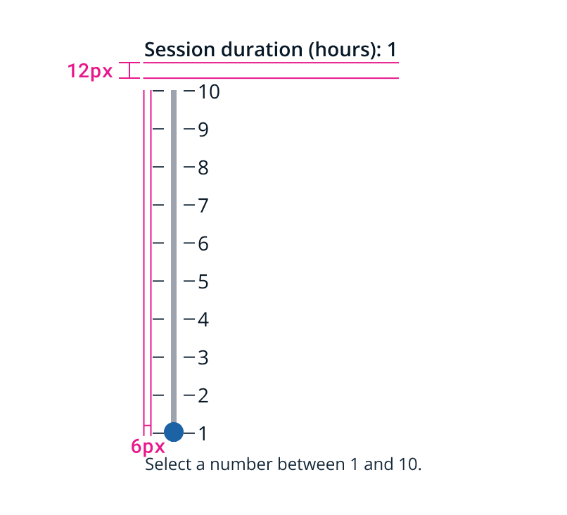 Instructional text If instructional text is required, it should be short and verb-first. It’s not meant to replace the label or be used for examples. Instructional text for both horizontal and vertical variations appears below the slider.