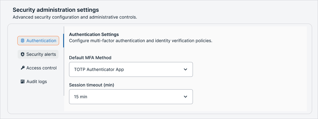 Admin settings: vertical tabs for different categories like Access, Notifications, and Roles
