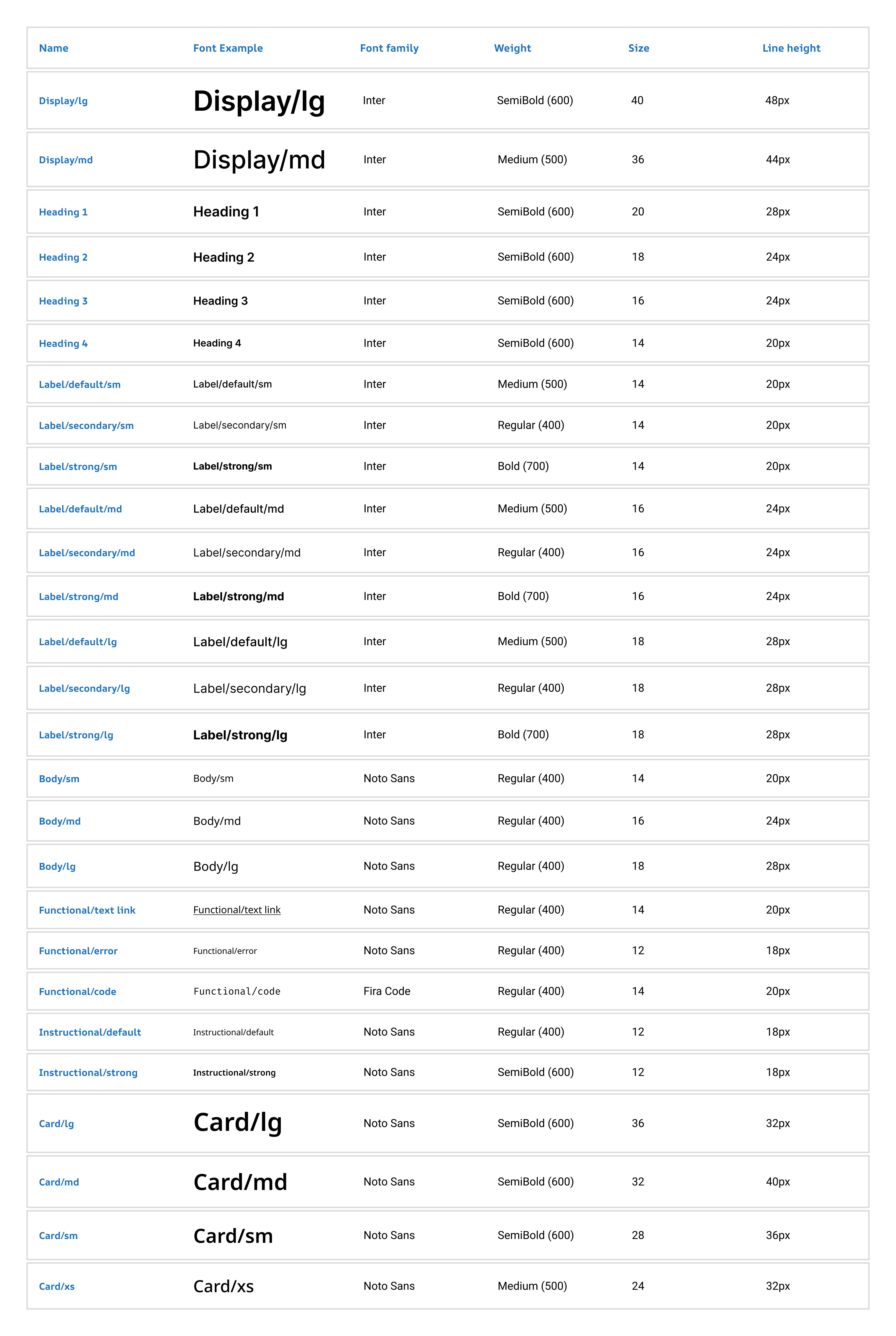 We use two font styles (Inter and Noto) to create a clear and cohesive hierarchy: one for headings and emphasis, and another for body text and supporting elements. Bold, clear, and purposeful typography is used to establish structure, guide users through content, and reinforce our brand identity.